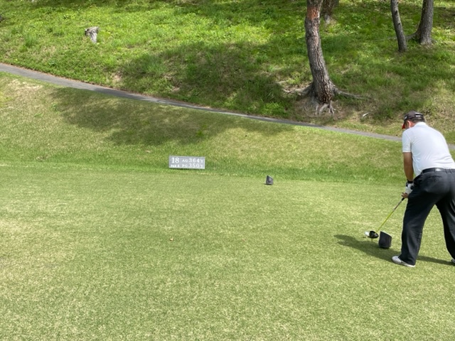 1番426yミドルは、ドライバーは竜巻球。いきなりOBです。打ち直しはまずまず。6アイアンで12mに4オン。ダボ。素晴らしいアプからT.Nさんがパー発進。