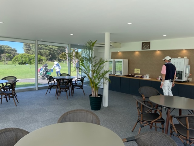 着替えて、レストランへ。ハムエッグ(サラダ付き)660円を食しながら、独りミーティングです。その後、パターを転がして東アウトから。