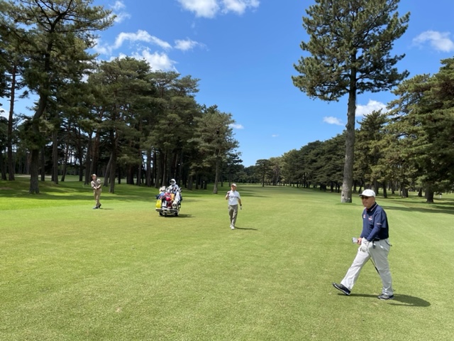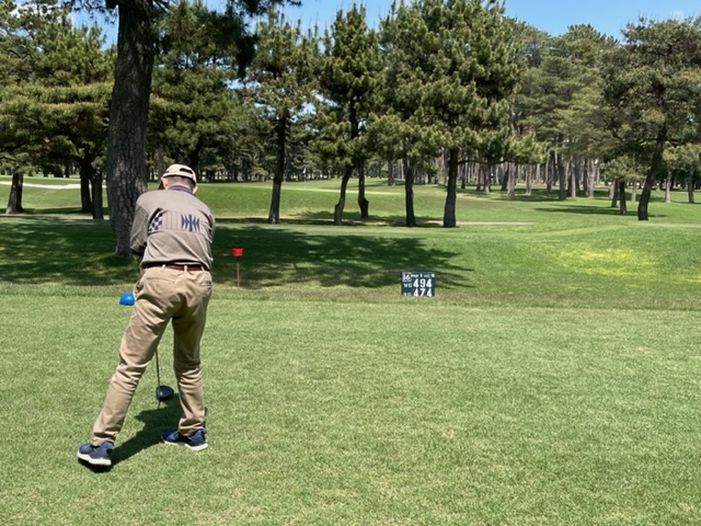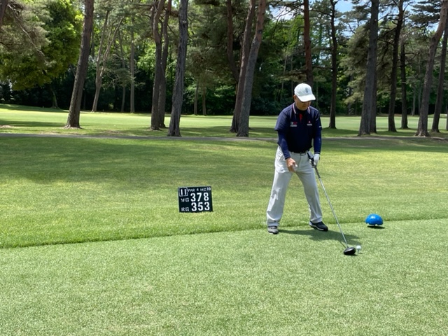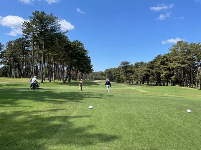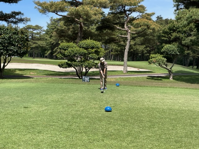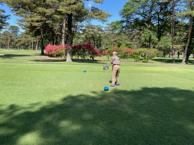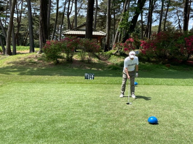 今日は以前ご一緒させていただいた会員のK.Mさんとそのご友人のやはり会員さんのお友達のT.NさんとT.Tさんです。ティは青を使用します。グリーンはホワイトです。今日は、明日の龍ヶ崎のシニア予選では、60度を封印しようと考えているので未使用で行こうと決めました。