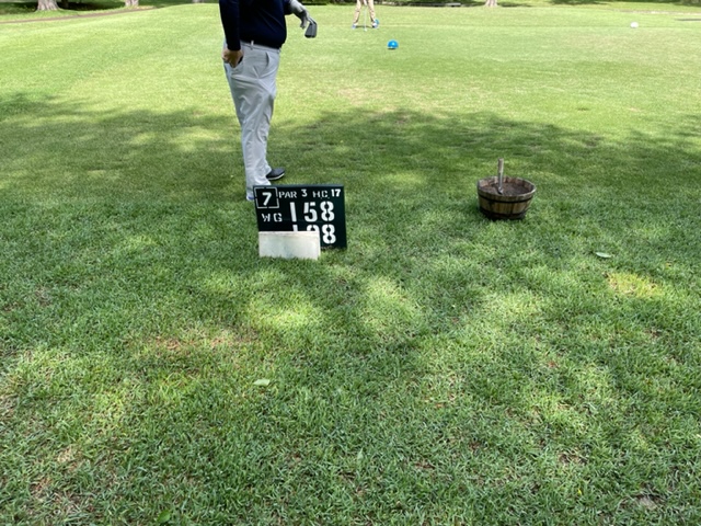 7番158yショートは、7アイアンで打つも右のバンカーイン。7mに2オン。ここからまたまた3パンチ。どうしたマエシン。手前から素晴らしいアプでT.Kさんがパーゲット。