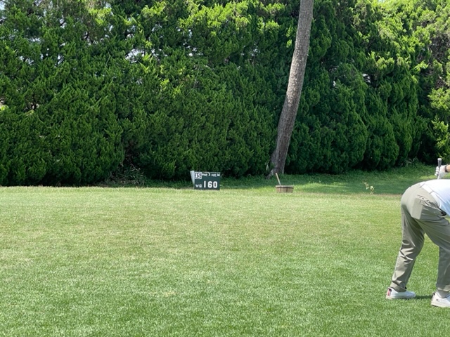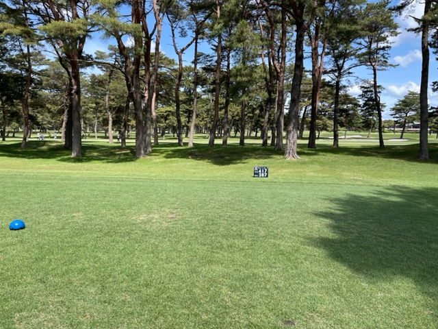 2番336y左ドッグのロングは、ドライバーは林越えを敢行。が、木に当たる。6アイアンで花道へ。56度で1mに。これを外す。アホ。