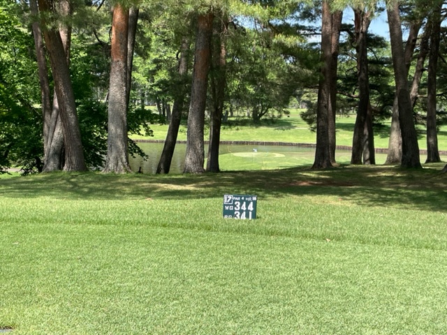 17番397yミドルは、ドライバーは左の林へ。7アイアンで転がし乗せようとしたが、届かず。なんとか2mに3オン。これを沈めないとまたまた90にリーチになる。が、入らず。ガクッ。