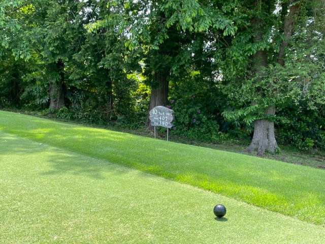 9番567yロングは、ドライバーは左へ。6アイアンでナイスアウト。6アイアンで打つもちょいとショート。簡単なアプが2mに。外してボギー。