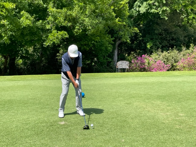 18番516yロングは、ドライバーは左ラフへ。5アイアンでナイス位置へ。9アイアンでの3打目が右へ。簡単なアプをミス。入らずボギー。アチャー。素晴らしいアプ&パターでK.Kさんが銅竿パー奪取。
