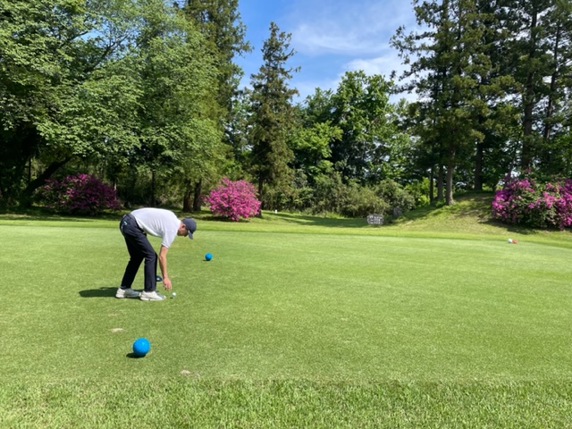 6番349yミドルは、ドライバーは左のクラスバンカーイン。9アイアンで打つもどダフリ。3打目も乗らず。ダボ。素晴らしいパター力でS.Sさんが銅竿パー。また、ナイスアプからT.Wさんも鉄パー奪取。