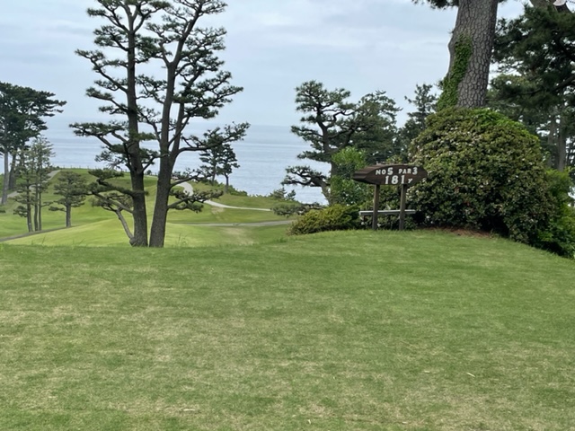 川奈の感想・・・・いやー、ホント素晴らしい。日本で廣野と川奈は別格です。やはりアリソンさんは凄いです。60歳過ぎの体には上りがきついですが、このくらいのアップダウンで音を上げていてはゴルファーとは言えませんね。我々プレーヤーにとっては海側の木々を剪定してくれたのは最高のプレゼントでした。芝(フェアウェイ)は少し伸びてましたが、生き生きとしていました。大島コースの磯ラーメンとカレーが食いたかった~。