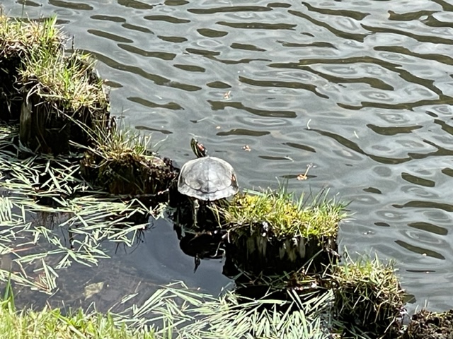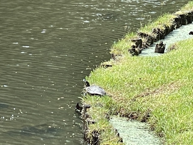 13番512yロングは、ドライバーはまずまず。池の亀五郎と亀子の写真を撮る。3w、52度でショート。なんとか寄せて銅パー。しっかり3オンの東京都のR.Sさんが無難にパー。また、ナイスアプから東京都のT.Hさんが鉄パー。