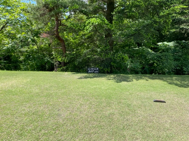 11番455yミドルは、ドライバーは左ラフへ。8アイアンで斜め前方へ。3打目が乗らず。ダボ。すげー長いパターを放り込んでY.Oさんがパー!!スゲー!!