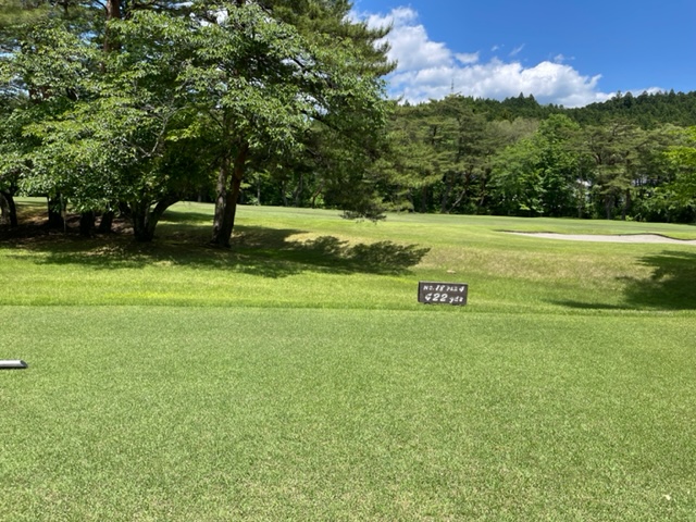 7番435yミドルは、ドライバーはまずまず。6アイアンで7mに2オン。無難にパーでベスベス獲得。