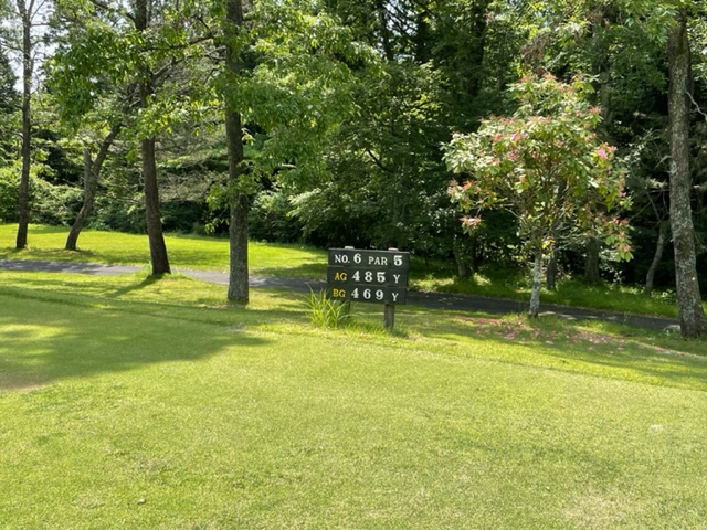 7番314yミドルは、ドライバーはナイス。52度で2オン。無難にパー。素晴らしいアプから東京都のF.Mさんが銅パー。また、T.Kさんが鉄パー。