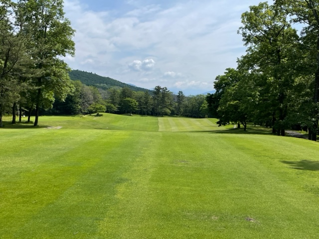 1番527y左ドッグのロングは、ドライバーはまずまず。3w、25度で打つもデカい。なんとか寄せて銅パー。見事な3オンから東京都のT.Kさんが無難にパー。流石は30歳。
