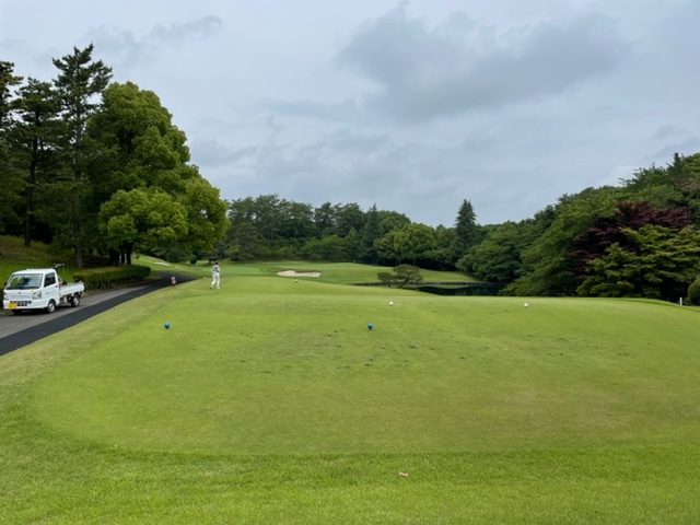 東コースから。今日はメインのAグリーン。黒ティで進行します。最近、ボケが出て来ています。前回(約2カ月前)に付いて下さったキャディさんを忘れるようになっちゃった。弊社縁のG.Kさんがお見送りくださいます。