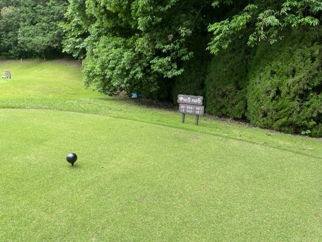8番575yロングは、ドライバーは竜巻球。6アイアンでまずまずの位置へ。3wでの3打目はショート。残り60yからまずまずのアプを見せるもパターがショボ。ボギー。