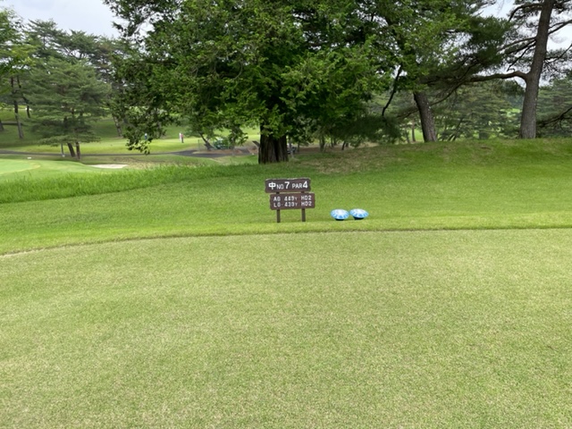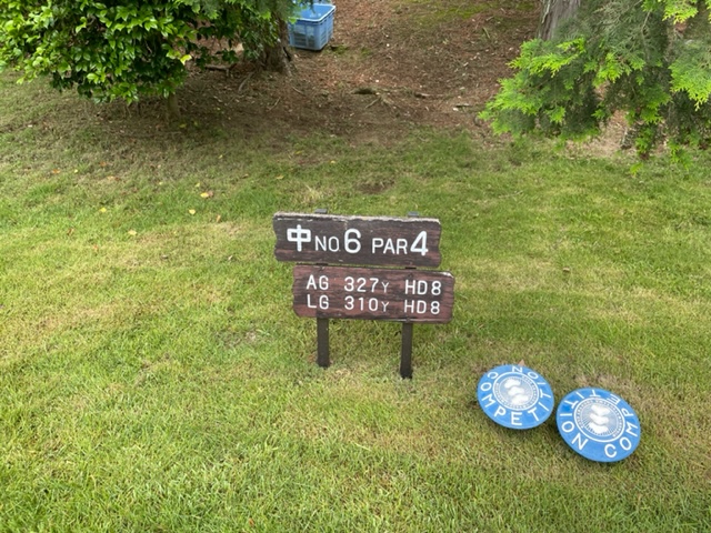 6番327yミドルは、ドライバーは左ラフへ。PWで打つも右手前へ。なんとか1.3mに寄せて銀パー。さらにナイスアプからH.Tさんが銅パー。