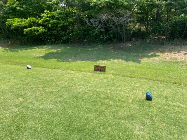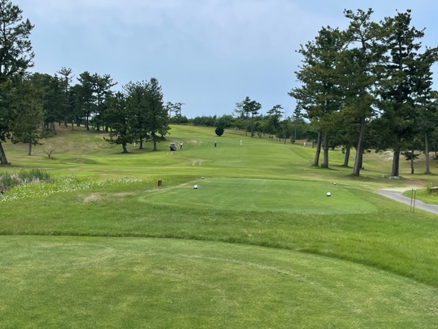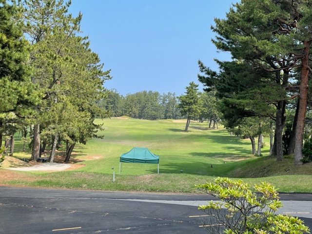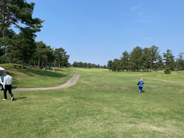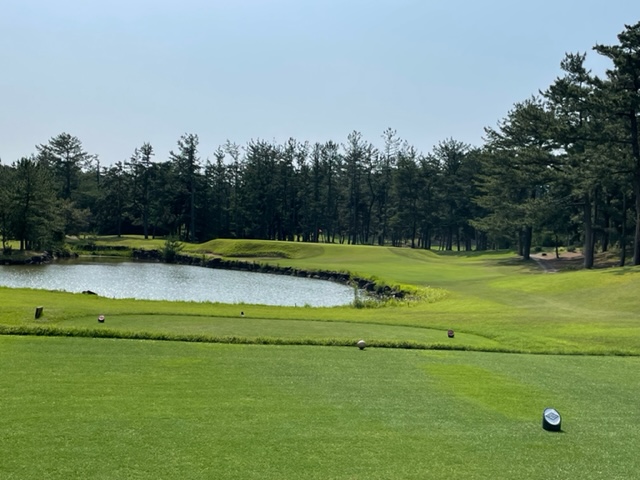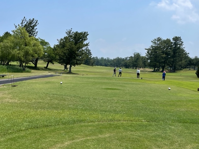 その後、パターを転がして、加賀のインから。今日は青ティで進行します。同伴者は縁の神奈川県のI.Mさん、関西チームのN.Mさん、Mさんとのペアリングです。