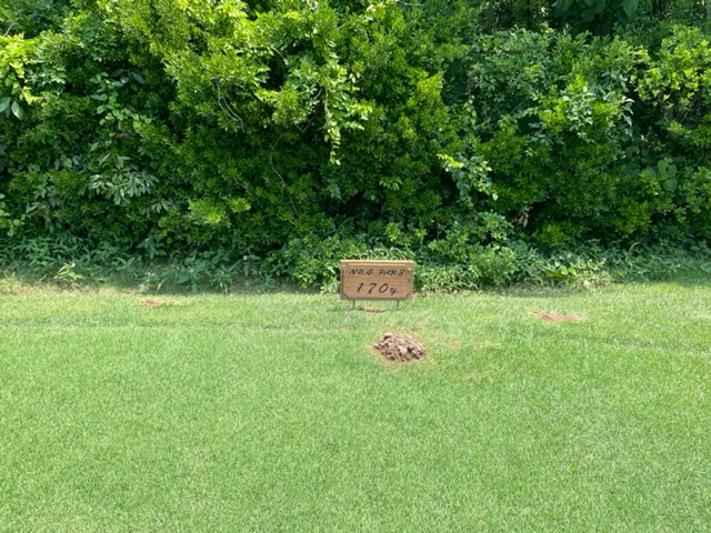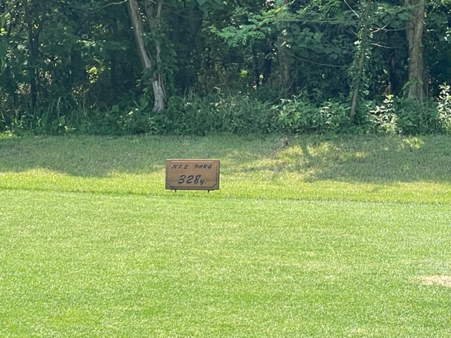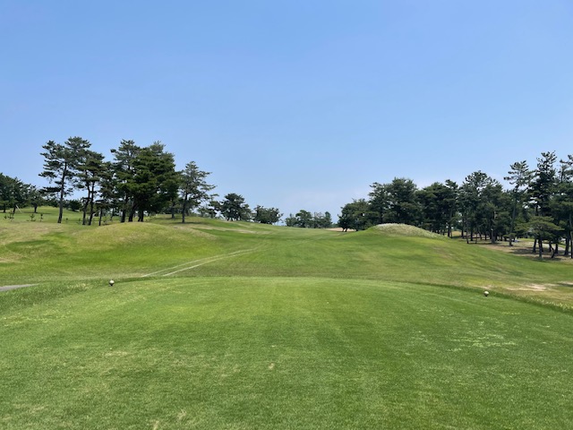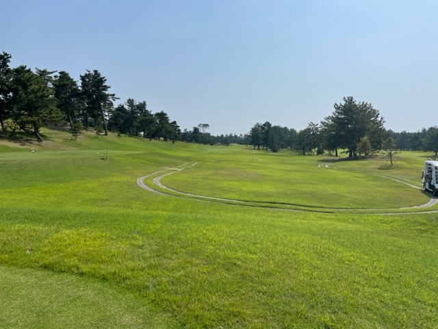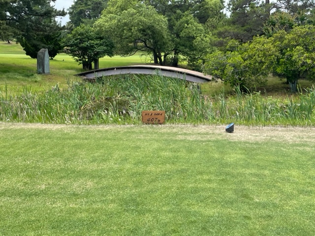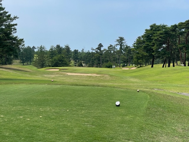 6番370y右ドッグミドルは、ドライバーはナイスでしたが、バンカーインとなっていました。8アイアンで手前12mに2オン。無難にパー。同じく2オンからMさんも無難にパー。