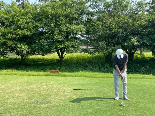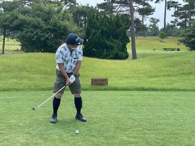 4番170yショートは、5アイアンで打ってピン手前2.5mに1オン。沈めてナイスバーディ。見事なアプでN.Mさんがパー奪取。