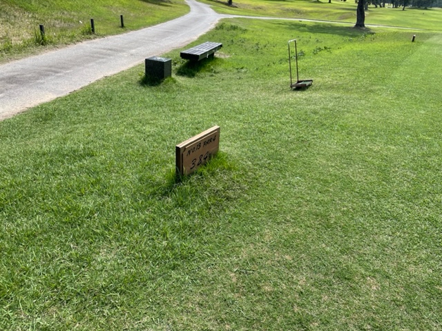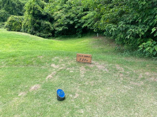 8番407y左ドッグのミドルは、ドライバーは右へ。ややこしい位置へ。6アイアンで打って斜め前方へ。今度は8アイアンで打つも奥へ。なんとかボギー。