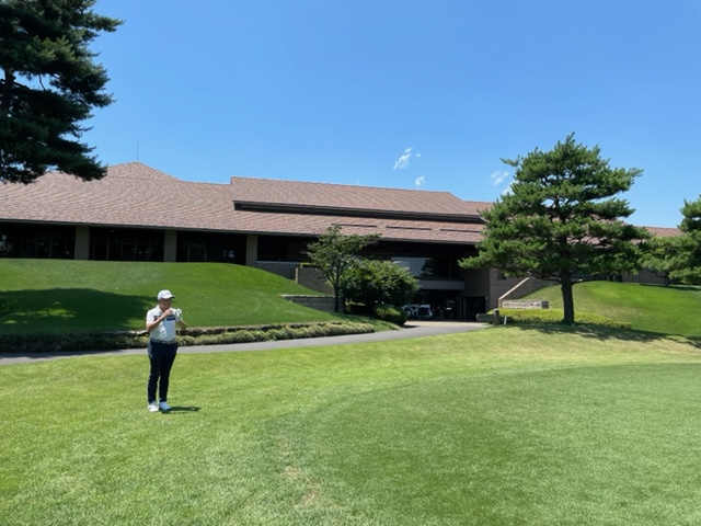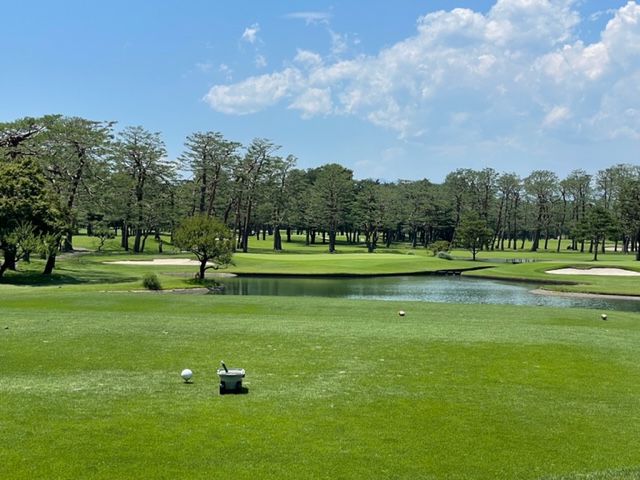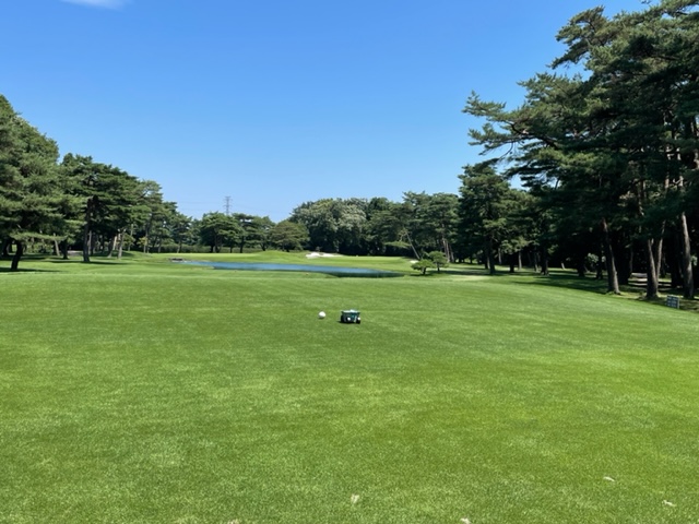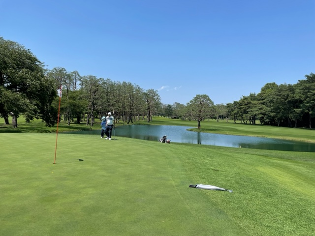 パターを転がして西から。今日は青ティでBグリーン使用です。