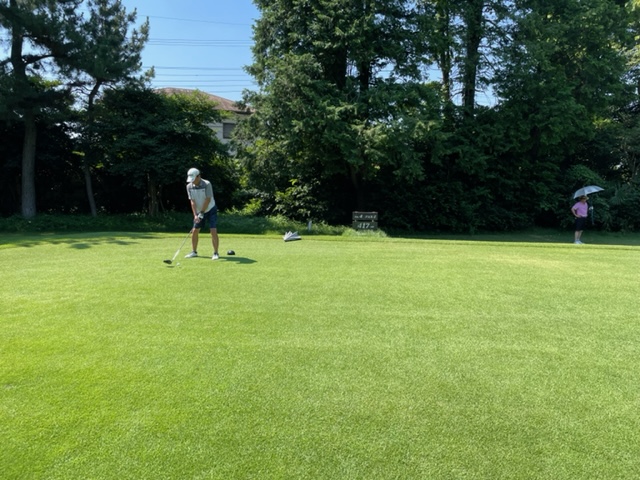 パターも転がさず、アウトから。今日は青ティで進行します。顔が青いぞ~大丈夫か~?の声が掛かる。いつものようにK.Kさんとはマッチで楽しみます。