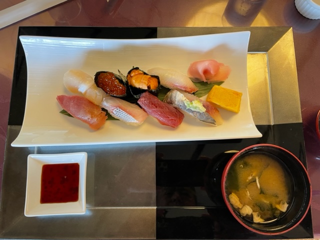 ランチは握り寿司をいただく。可もなく不可もなく。
