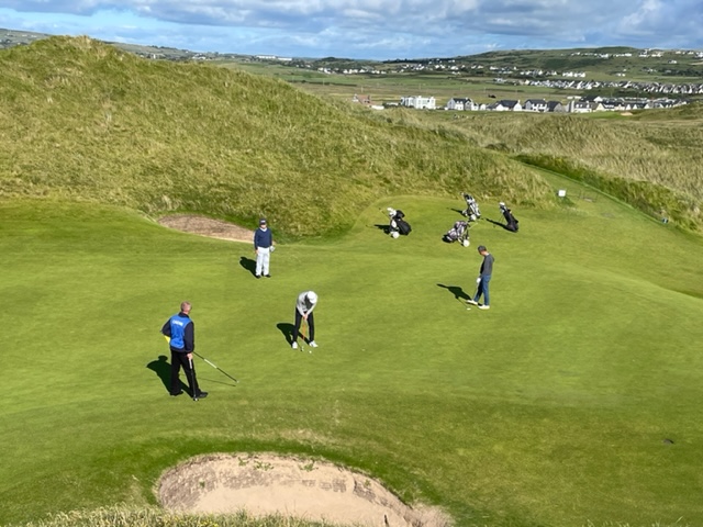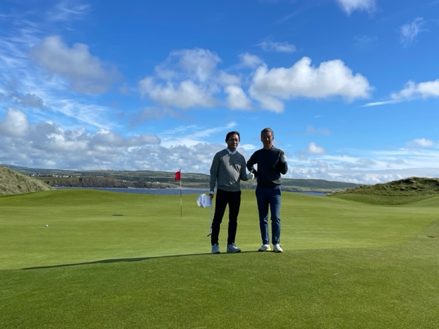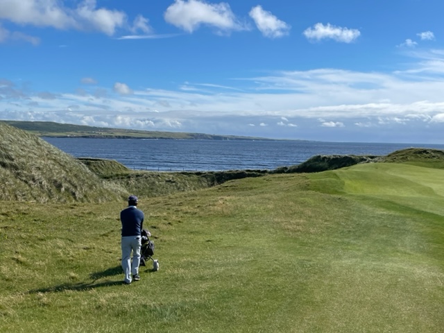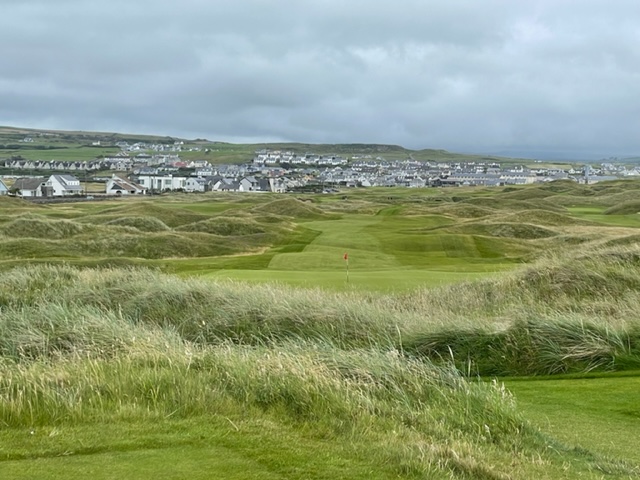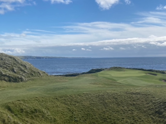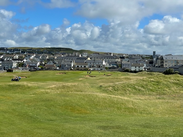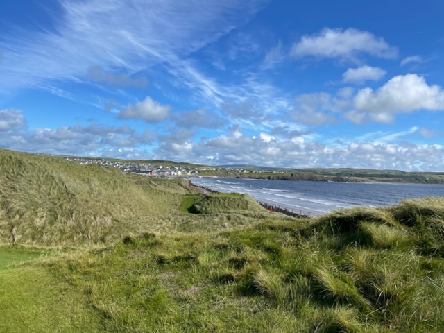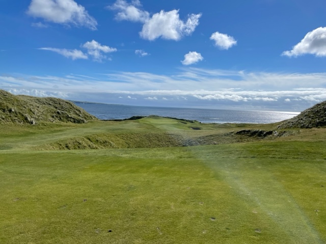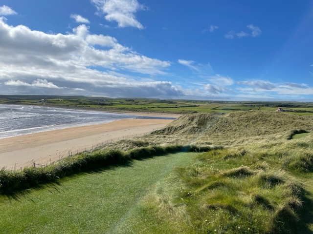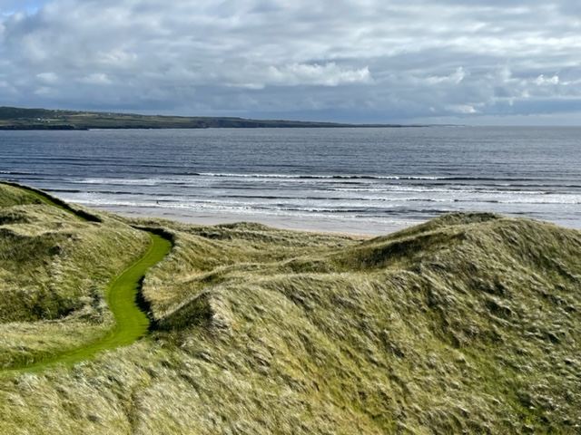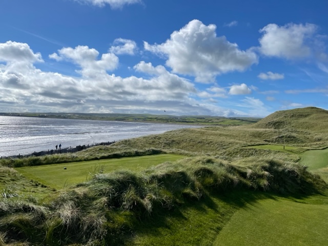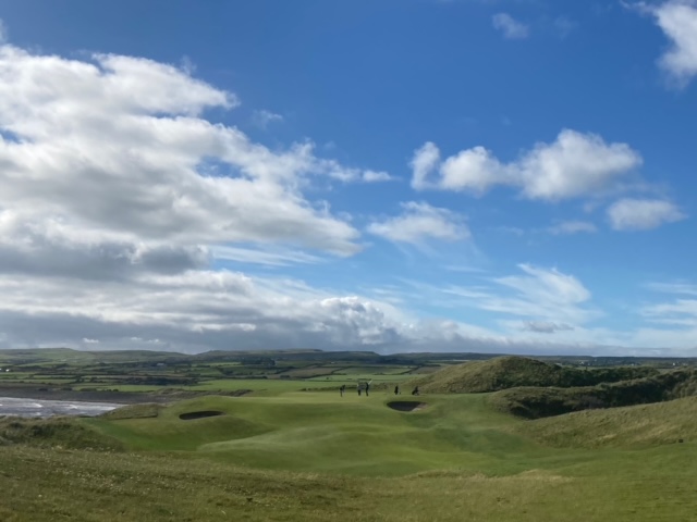 ラヒンチの感想・・・・ここは最初イギリスの軍人さんの方が設計し、その後、オールドトムモリスが手を加え、さらにはアリスターマッケンジーが手を加えて、このような素晴らしいゴルフ場に変わりましたそうです。とにかく、ビューが素晴らしく、ゴルフより写真を撮り続けたくなります。それほど美しいです。また、5番のようにグリーンが全く見えないショートがあったり、これぞリンクスでした。リンクスというのは砂地でできたゴルフ場のことをいいますが、コース外にもあちこちに自然のバンカーが出来ています。ここラヒンチは戦略性、眺めの美しさ、コースメンテナンス、どれをとっても素晴らしいアイリッシュリンクスコースでありました。