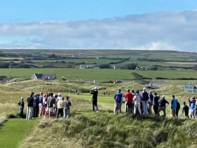 ワクワクしますね。スタート前、今日はスペシャルなVIPが来てるよ!と伺います。ジョーダンスピースとスコッティシャフリーだそうな!スコティッシュオープンのためとその後の全英のために来ているのでしょうか?