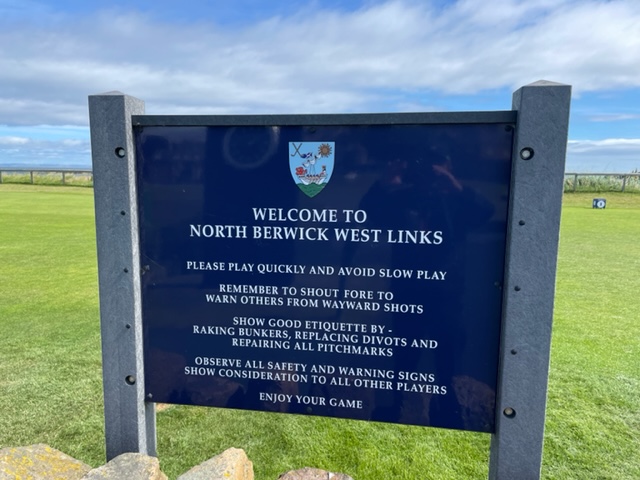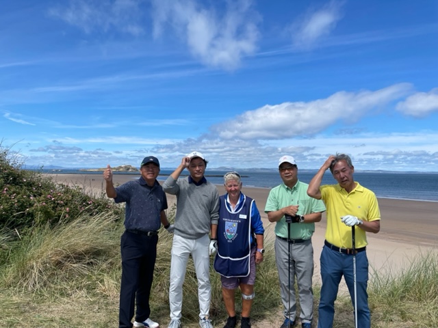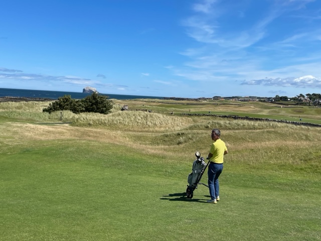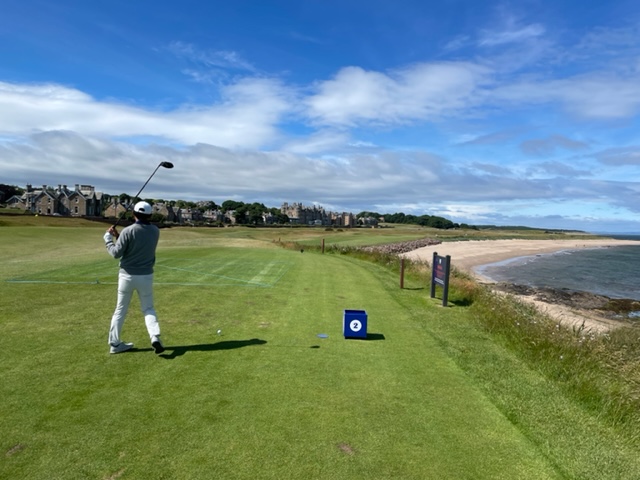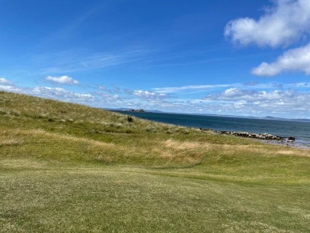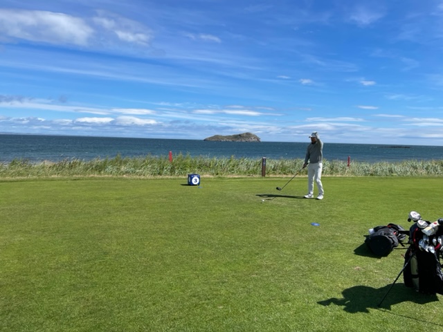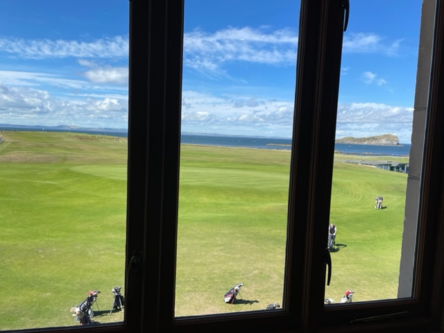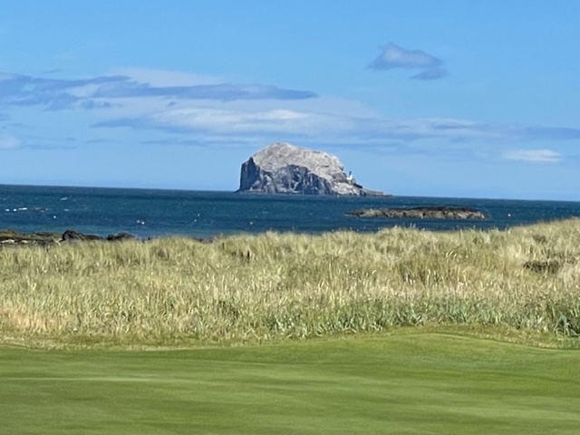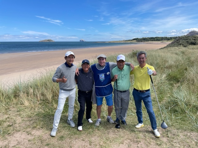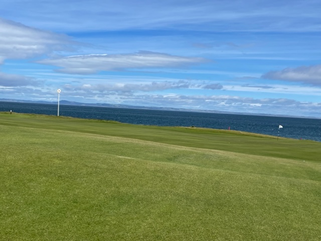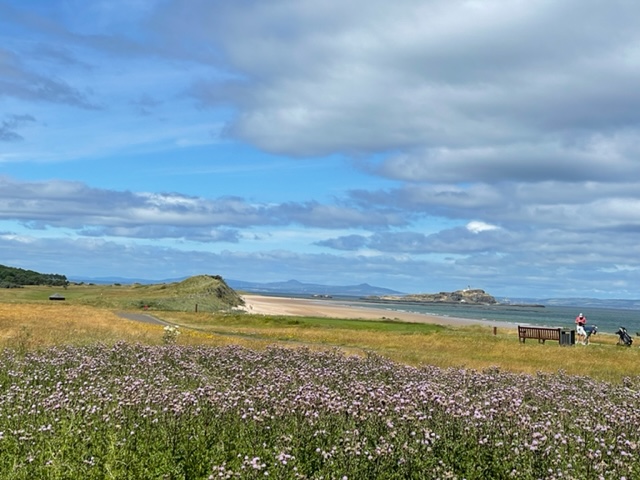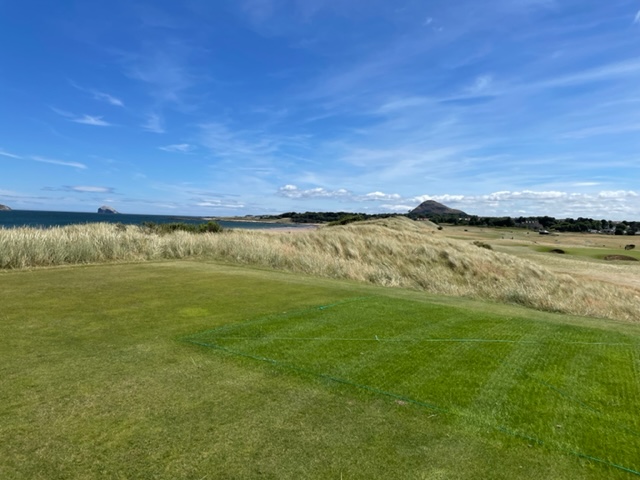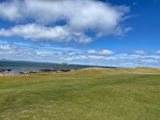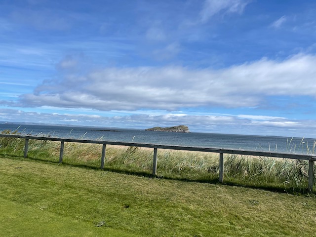 エジンバラ駅前のホテルからまずはPCR検査を受けにエジンバラ空港へ。そこから、最終ゴルフコースであるノースベリックへと向かいます。ゴルフコース近くには素敵な海岸ロードがあり、車に乗りながらウットリ。隣りのルネッサンスでは松山英樹選手が戦うスコティッシュオープンが開催されています。で、その隣が昨日プレーしたミュアフィールドです。