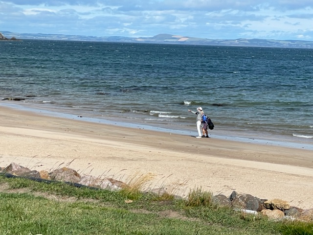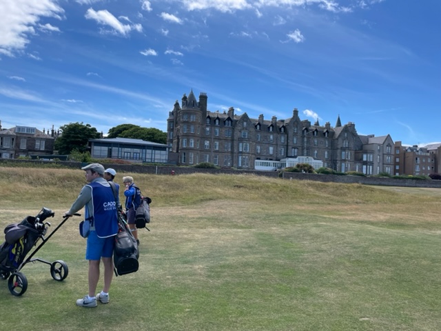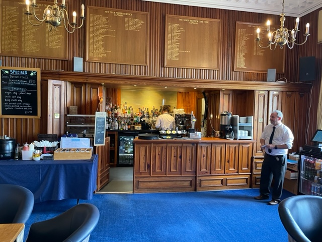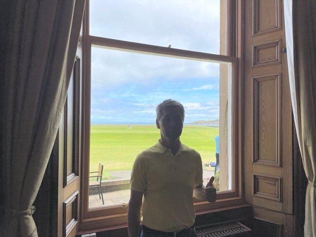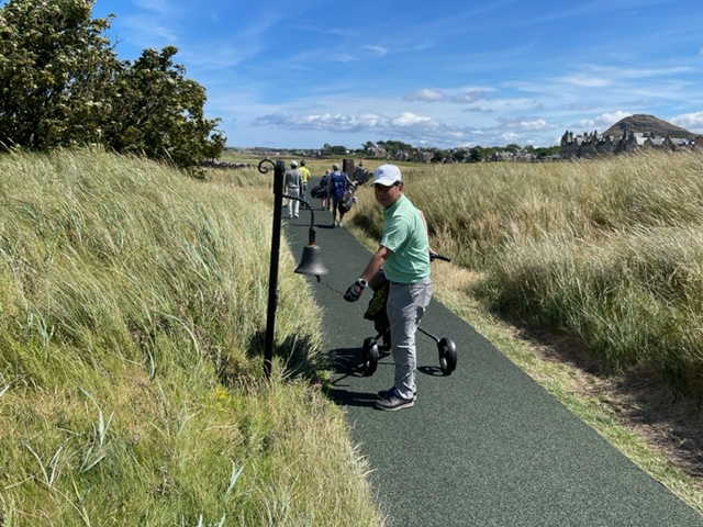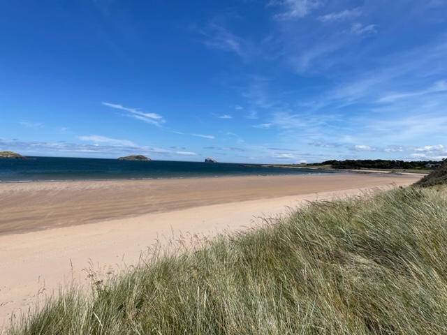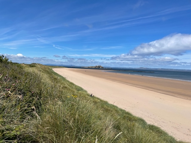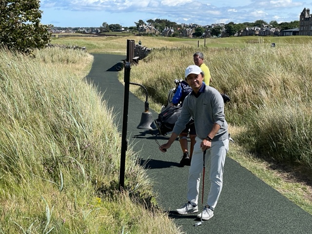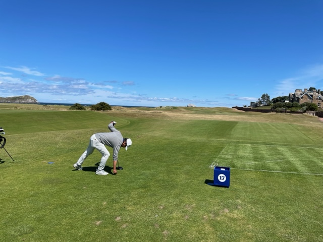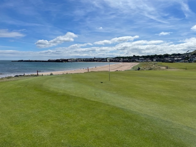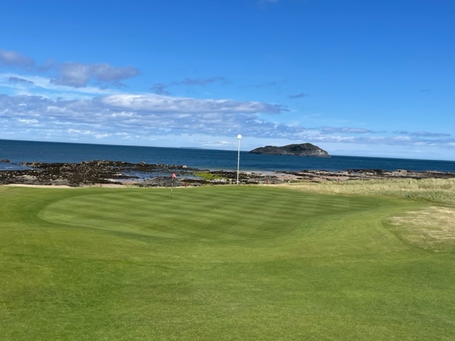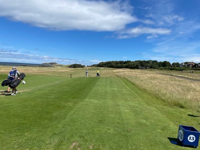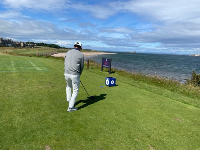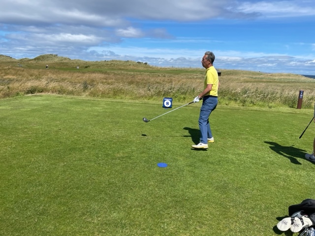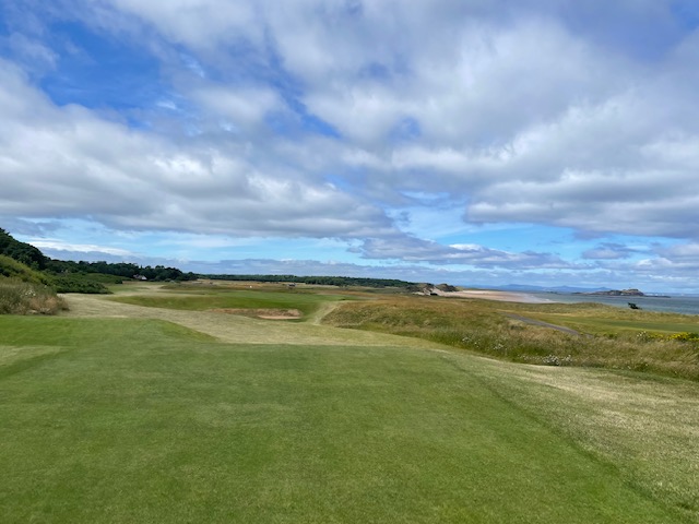 エジンバラ駅前のホテルからまずはPCR検査を受けにエジンバラ空港へ。そこから、最終ゴルフコースであるノースベリックへと向かいます。ゴルフコース近くには素敵な海岸ロードがあり、車に乗りながらウットリ。隣りのルネッサンスでは松山英樹選手が戦うスコティッシュオープンが開催されています。で、その隣が昨日プレーしたミュアフィールドです。