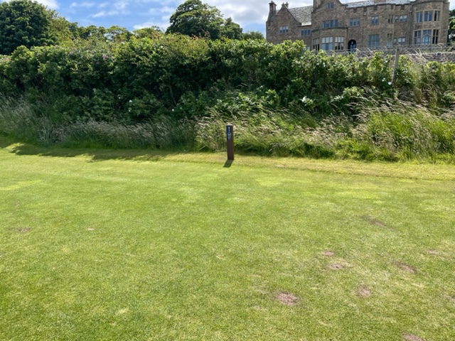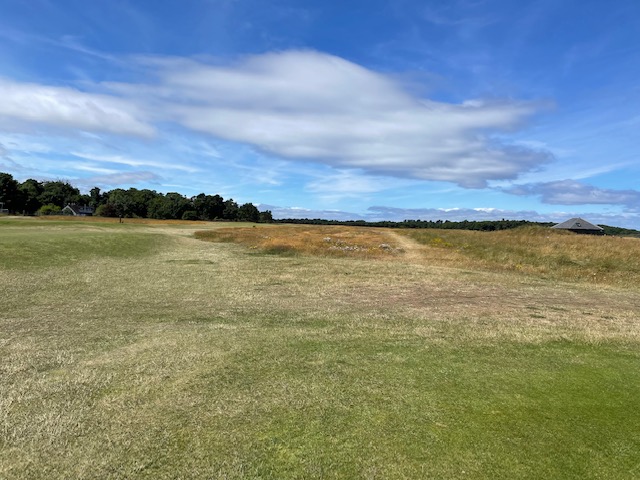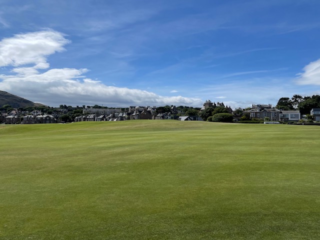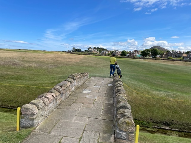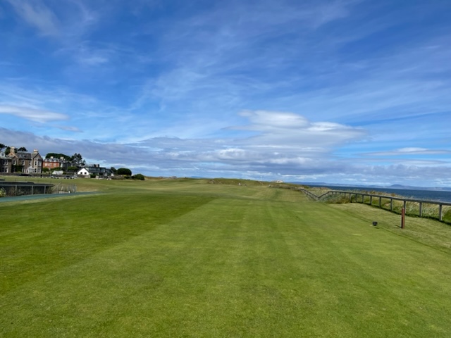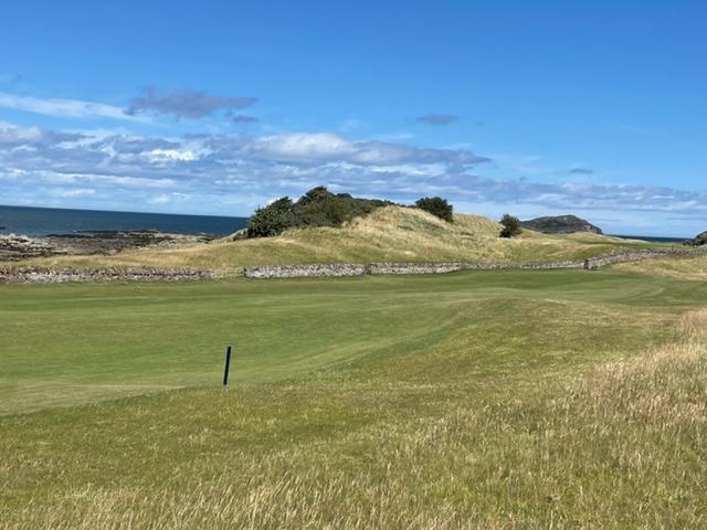 16番軽い左ドッグでクリークが流れるミドル。右手のスコットランド特有の石造りの建物と左手の小島と海岸線のコントラストが見事なホ―ル。石橋が心地良かった。