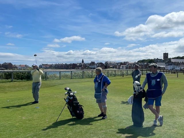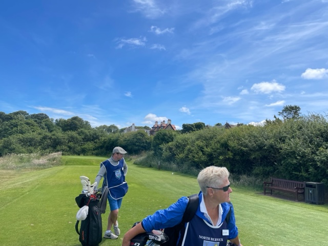 さ、いよいよスタートです。スコアカードがなくなり、今回は違う日記にしてみます。同行のS.Mさんに「前田さんにノースベリックをプレーしてもらいたい!それも天気の良い日に!」と言われていたノースベリック。しかも、超好天であります。キャディはアイリッシュのフランクです。
