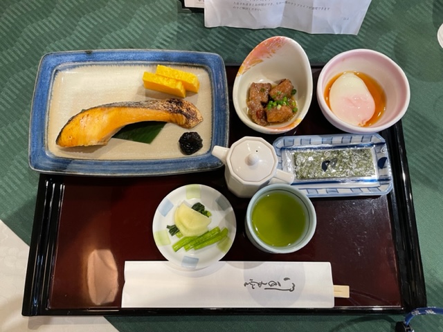 まずは、レストランへ。和朝食をオーダー。早い!すぐに出てきた。焼き魚は湯引きだな。確かに湯引きの鮭でしたが、味はまずまずでした。グリーンジャケットを聴きながら、1時間強を独りミーティング。なかなかの時の過ごし方です。