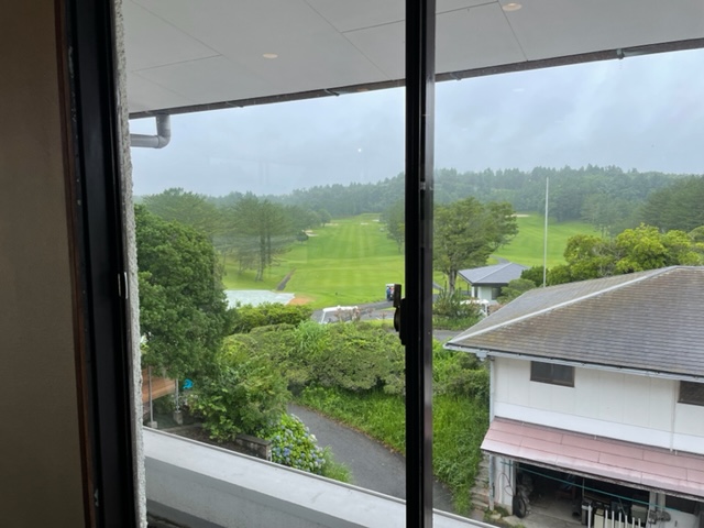 10番365yミドルは、ドライバーは竜巻球で木に当たり、ラフへ。危ない危ない。6アイアンで残り40yへ。ナイスアプでしたが、パターがショボ。ボギー。
