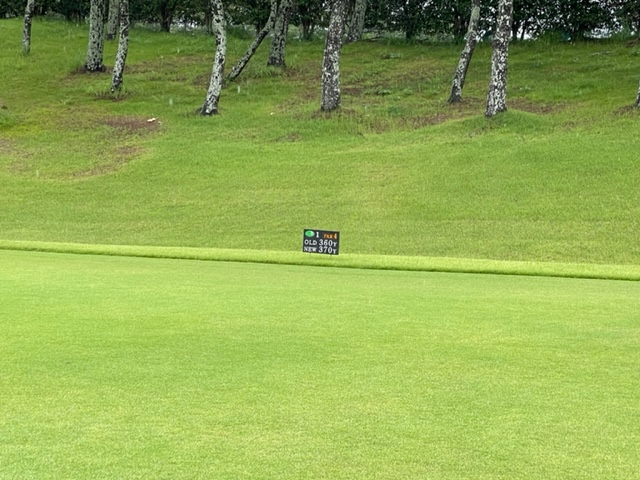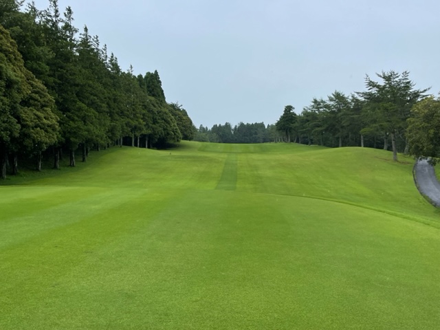14番505yロングは、ドライバーは狙いより左に飛び、木に当たり、林に入れる。5アイアンでナイスアウト。残り170y上りを5アイアンで完璧球。ピン左2mに3オン。が、入らない。