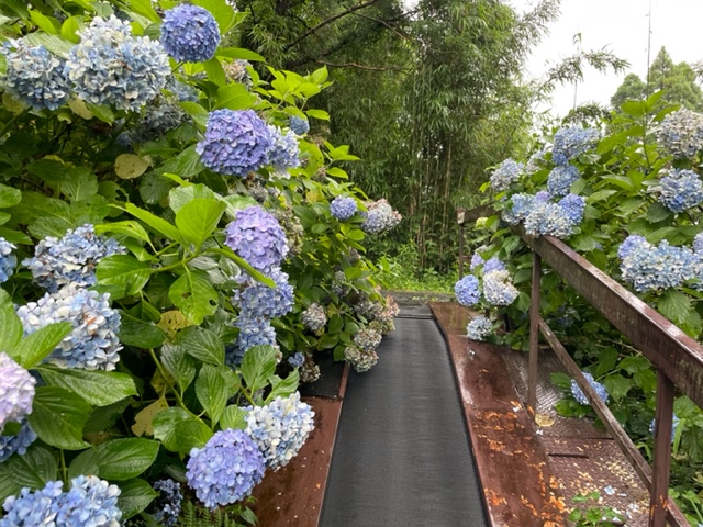 ここからカートでなくスカイレーターで上がる。アジサイが綺麗でした。