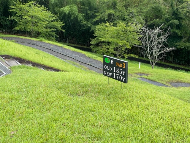 3番175y打ち下ろしショートは、8アイアンで打つも右へ。52度で転がしてパー。