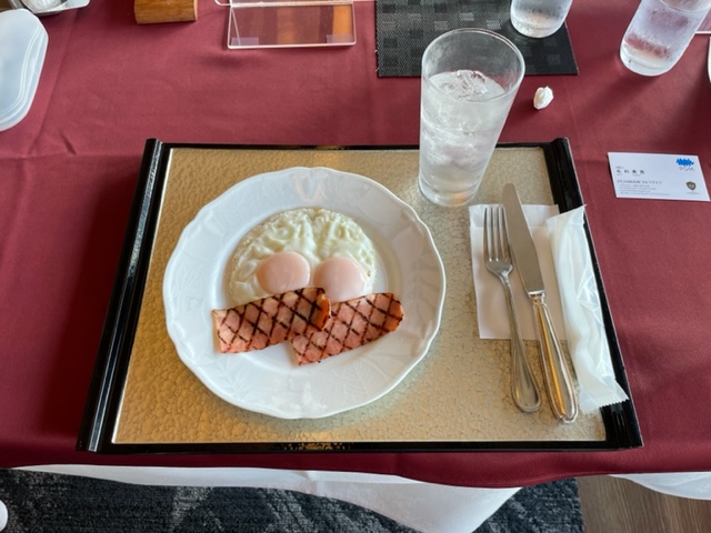 まずは、レストランへ。レストランには以前京カンにいたHさんがおられ、話が弾みました。7時49分スタートでしたが、上のレストランから眺めてて、アーリーバードの日でー組いましたが、その後になるそうです。ゲボッ。
