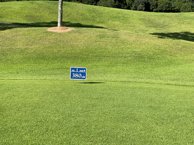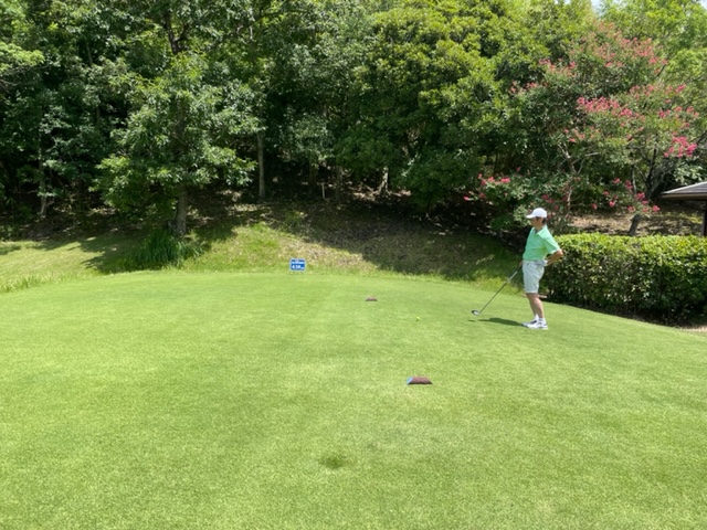 2番369yミドルは、ドライバーはまずまず。8アイアンで9mに2オン。無難にパーもアルミならず。素晴らしいアプからN.Wさんが銅パー奪取。
