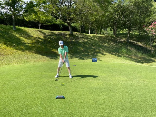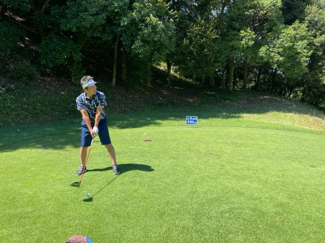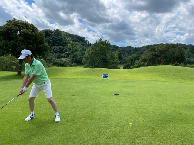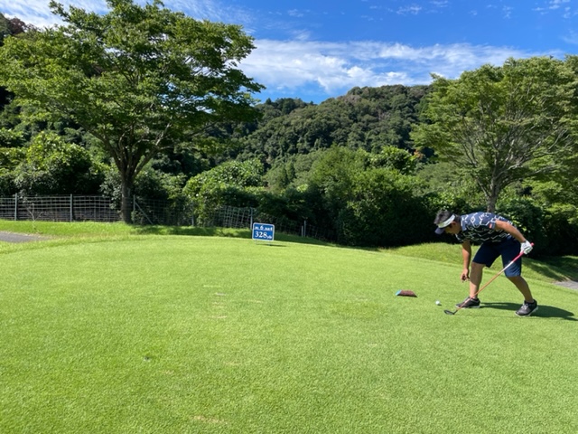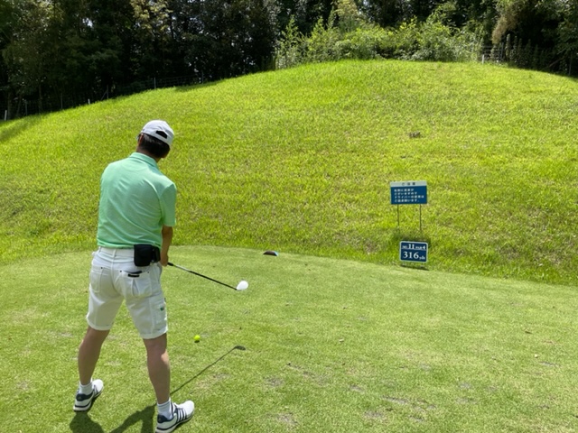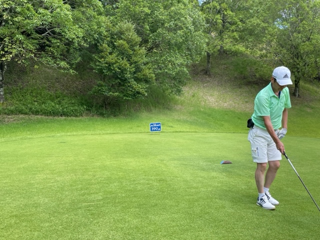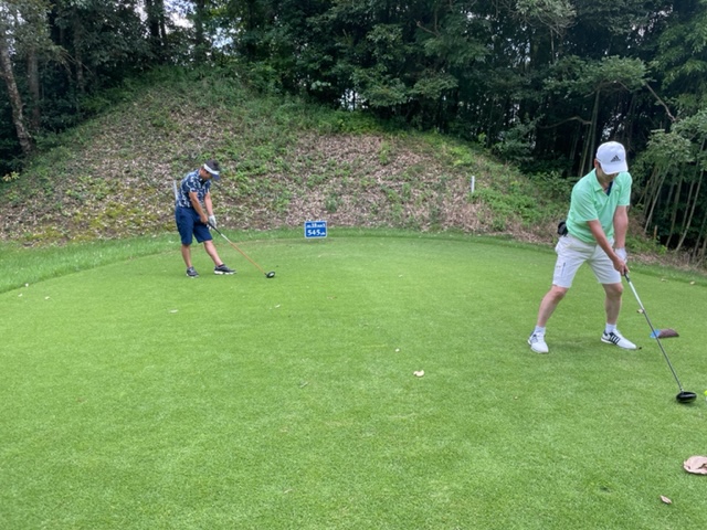 今日は同じ歳の飛ばし屋M.Hさんがいるので、青ティで進行します。今日は3サムです。ここはセルフがほとんどのゴルフ場です。