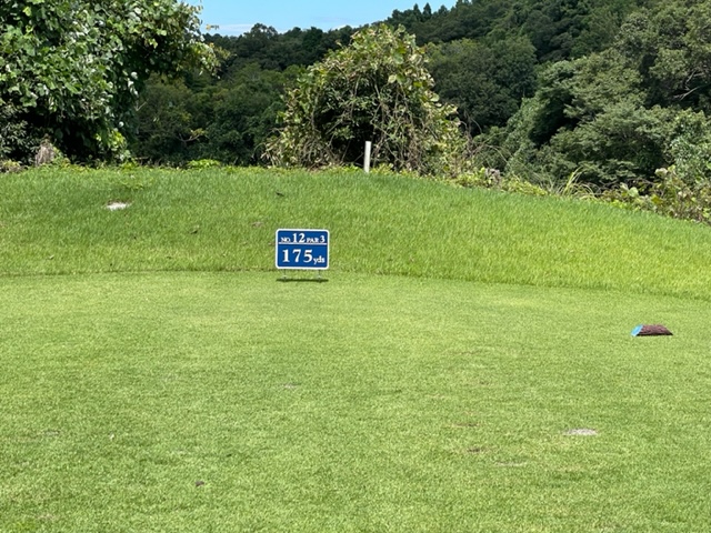 11番316yミドルは、ドライバーは右ラフへ。52度で打つも4mに2オン。無難にパー。3mを沈めたM.Yさんが銀バーディベスト。スゲーパター力だな。
