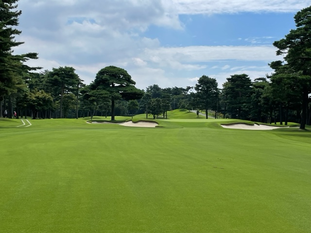 5番435y左ドッグのミドルは、ドライバーは竜巻球。セカンドを5アイアンで狭い空間を打つも木に当たる。なんとかPWで3オン。ボギー。