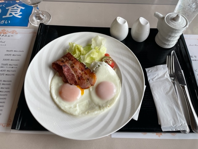 私は少し前に到着し、ベーコンエッグを食しながら、独りミーティング。H.Kさんは打球場へと向かわれました。