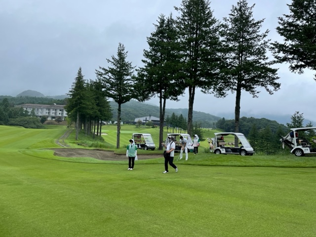 2番391yミドルは、ドライバーは左へ。赤杭になっていたが、打ち直す。4打目を5アイアンで打つもショート。寄らず入らず7となる。
