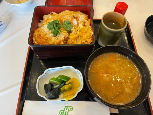 ランチはかつ丼と豚汁を食す。味はまずまず。豚汁は旨い。
