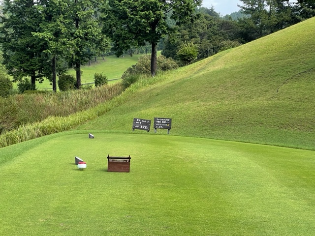 2番222y打ち下ろしショートは、3wでナイス1オン。無難にパー。右のややこしい位置からK.Nさんがスーパーアプで連続のパー。