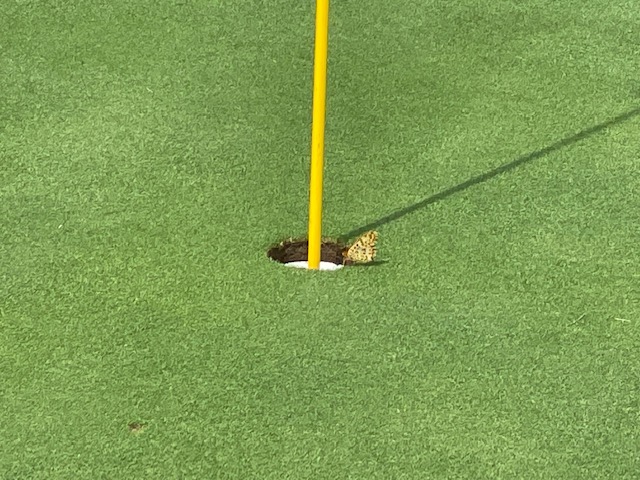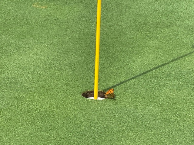 9番347yミドルは、ドライバーはナイス。52度で3mに2オン。残念パー。2.4mに2オンのY.Aさんも残念パー。1.9mに2オンのK.Nさんはしっかり沈めてナイスバーディ。今日2個目。素晴らしい。流石はクラチャン予選常連者であらせられる。