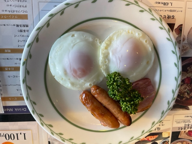 まずは、例によってレストランへ行き、べーコンエッグを食しながら、独りミーティングです。その後、東アウトから。今日は青ティ使用です。