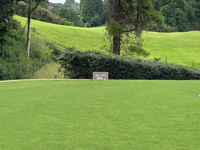 9番509y左ドッグのロングは、ドライバーは最高。が、セカンドの3wが竜巻球。3打目の52度がショボ。寄らず入らずボギー。