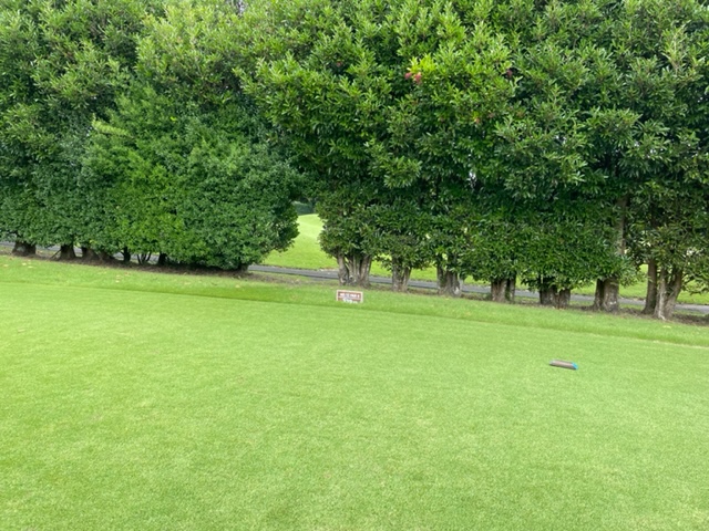 7番366yミドルは、ドライバーはまずまず。8アイアンが竜巻球。寄らず入らず。素晴らしいアプからT.Oさんがパー奪取。