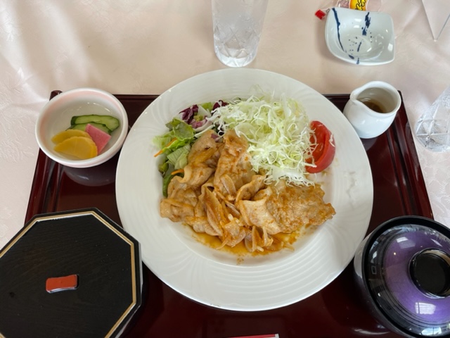 ランチは、生姜焼きを食す。ごはん少なめ、野菜多めをオーダー。まずまず。